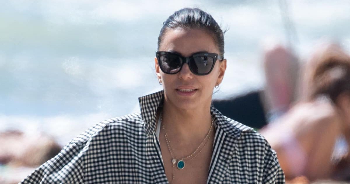 Longoria embraced one of the season's hottest trends with a matching gingham bikini set, topped with an oversized button-down shirt in the same timeless print. This effortlessly polished ensemble is the essence of elevated vacation fashion for 2026.