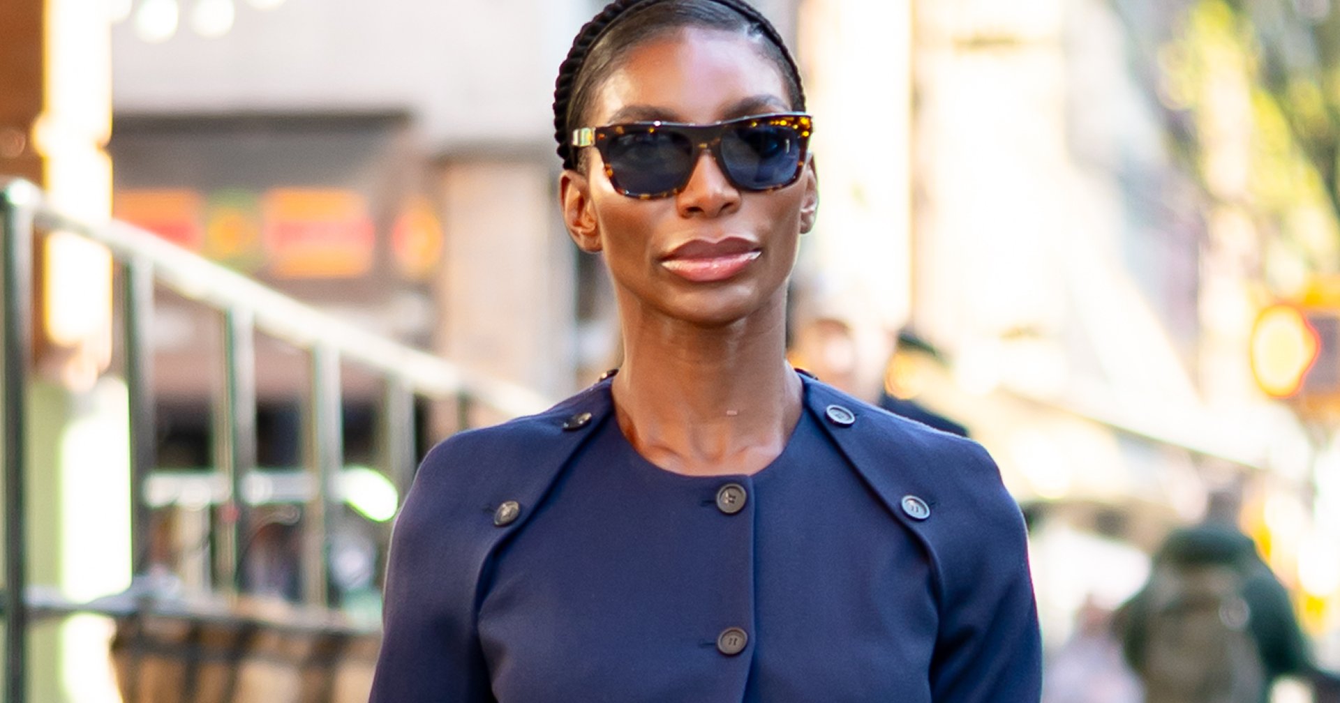 “Michaela Coel took to NYC's street style scene in a sultry take on the skirt suit trend.”