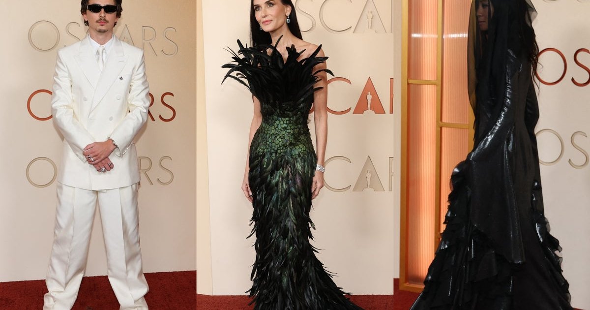 Timothée Chalamet, usually a red carpet darling, took a risk with his all-white tuxedo and sunglasses combo – a look that seemed more suited for a beach party than the Oscars. Demi Moore also caught eyes with her feathered Gucci gown, drawing comparisons to a peacock.