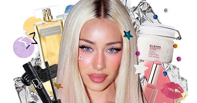 Sophia's go-to make-up trick is a universal crowd-pleaser: a cat-eye lash paired with clear gloss eyelids and sun-kissed blush. "Everyone looks good with a cat eye lash, clear gloss on the eyelids, high blush placement and blush on the nose bridge for that sunburnt look," she shares. Her signature scent? Anything from Narciso Rodriguez, with Patchouli Musc topping her list of obsessions. For skincare, she swears by La Mer’s Moisturising Soft Cream and Chanel’s Hydra Beauty Nutrition, ensuring a flawless canvas for her artful creations.