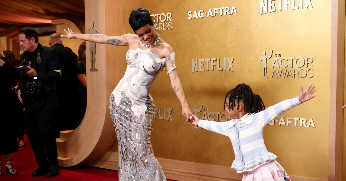 Teyana Taylor, known for her bold fashion sense, stole the spotlight at the Actor Awards this evening. Dressed in a custom Thom Browne creation, she added a touch of elegance with Tiffany & Co. jewelry. Her look was a perfect nod to the night's theme, "Reimagining Hollywood Glamour From the ’20s and ’30s," bringing a femme fatale edge that everyone talked about.